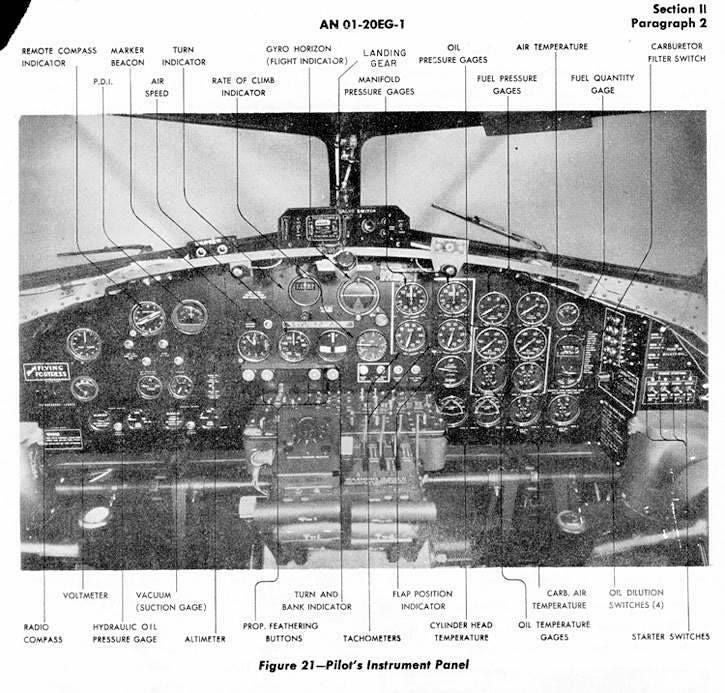Het is interessant om hier op te merken dat de meeste bommenwerpers uit de Tweede Wereldoorlog slechts één piloot hadden. Dit werd veroorzaakt door een aantal factoren, maar waarschijnlijk het gevolg van maximale mankracht wat elk land op dat moment had. Dit was enigszins revolutionair op dit gebied dat de B-17 twee piloten gebruikte in plaats van één. De belangrijkste reden hiervoor was de ingewikkelde controles in verband met een viermotorige bommenwerper, maar er was meer redenen dan alleen dat. Net zoals de ontwerpers de bommenwerper hadden gebouwd met handmatige back-ups voor alle hydraulische systemen, zo ontworpen ze ook een back-up in geval van menselijk falen (dwz een pilot wordt gewond of gedood in een gevecht).