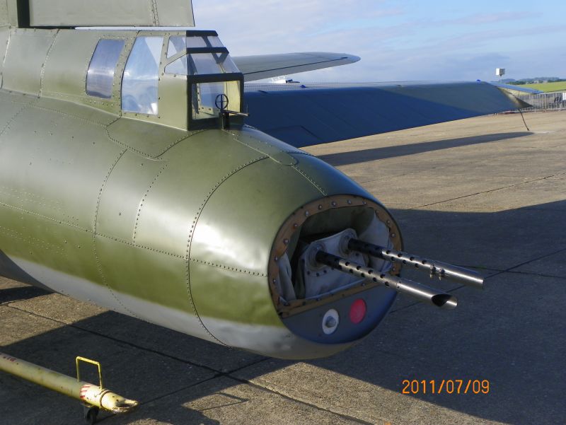 In de -E tot aan de vroege -G modellen, werden de mitrailleurs op een eenvoudige flexibele ophanging gemonteerd in een gat en bedekt met een canvas zak aan de achterkant van de romp. Kabels verbonden de mitrailleurs aan de pin en horizontale vizier die de schutter moest gebruiken om te richten. Het enige probleem met dit type vizier was dat de schutter moest een bepaald referentiepunt moest bepalen om de nauwkeurigheid te handhaven. Dit was geen geringe prestatie in een vliegtuig rond stuiterde op 30.000 voet (10 km) omgeven door temperaturen ver onder nul en het dragen van een zuurstofmasker, terwijl jachtvliegtuigen vanuit alle hoeken op je af kwamen. Met uitzondering van de eerste paar gebouwde series , werd de -G uitgerust met de aangedreven Cheyenne-staartgechut. Dit type geschut bevrijdde de schutter van het modderen met de mitrailleurs, terwijl ook deze positie een groter schootsveld gaf. Met deze modificatie kwam ook een reflecterend vizier zodat de schutter geen referentiepunt meer nodig had met de vizier waardoor hij een grotere nauwkeurigheid verkreeg.